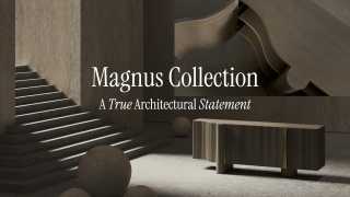 The Magnus Nightstand balances bold form with subtle refinement. Its oak veneer body is framed with smooth tambour doors in solid pine, while brushed brass handles lend a touch of understated luxury. With clean lines and a grounded silhouette, Magnus offers both function and quiet sophistication—an elevated essential for the modern bedroom.