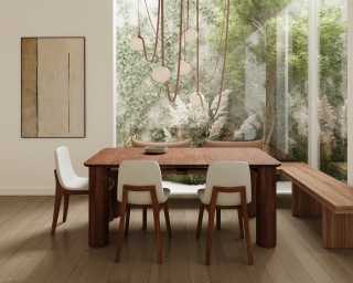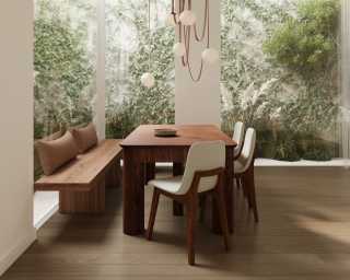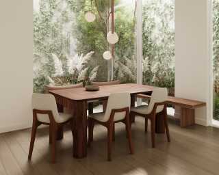 Immerse in the captivating allure of the Maia Extendable Dining Table, adorned with sculptural pillar-like legs and a sleek top featuring rounded corners. The Maia effortlessly commands attention in any dining space.