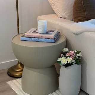 Like a statue in a grand space, this stunning, modern side table stands out with its monumental design and sophisticated aesthetic. The soft curves crafted from durable white concrete bestows a refined radiance upon the pedestal base.